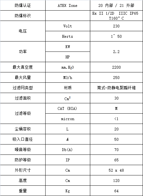 - 吸塵單元由ATEX21認證的電機組成;