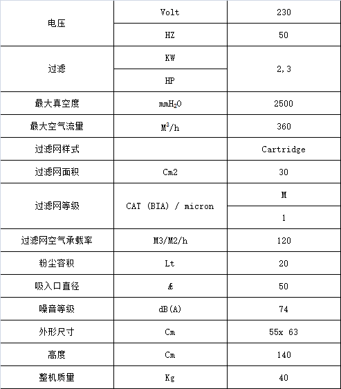 - 當過濾堵塞時,過濾警示燈會亮起。吸塵口位于過濾網(wǎng)下面,直徑Ø50 mm,軟管變徑接頭口徑為 50 /38 mm, 能夠同時吸塵和吸固體。