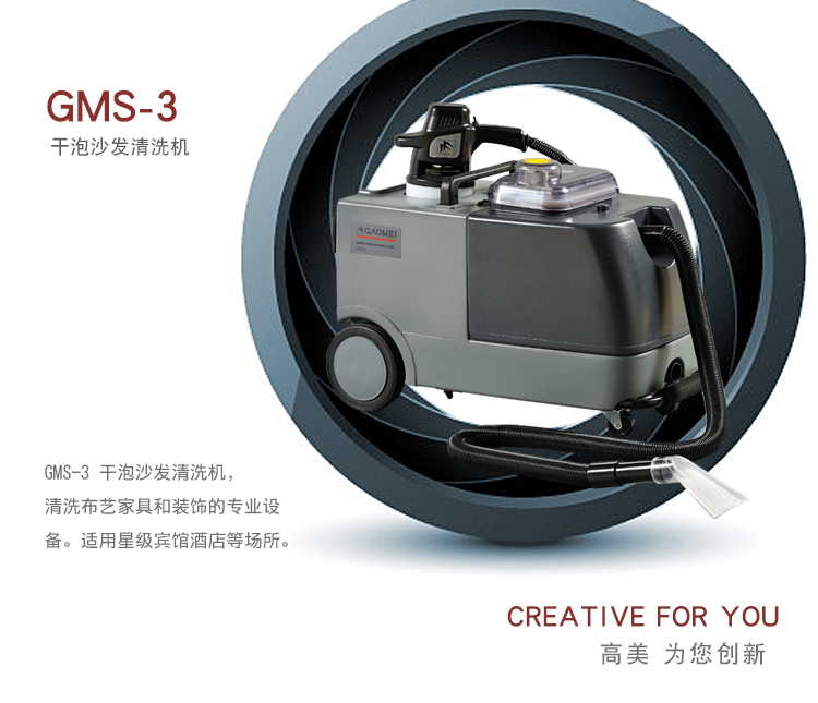 GMS-3干泡沙發(fā)清洗機(jī),融入專利發(fā)泡技術(shù)(ZL032212437 ),泡沫制造,電動(dòng)刷洗、真空抽吸三合一,是清洗各種布藝家具和裝飾的專業(yè)設(shè)備。配用清潔劑:干泡地毯水,地毯除漬劑,化泡劑。