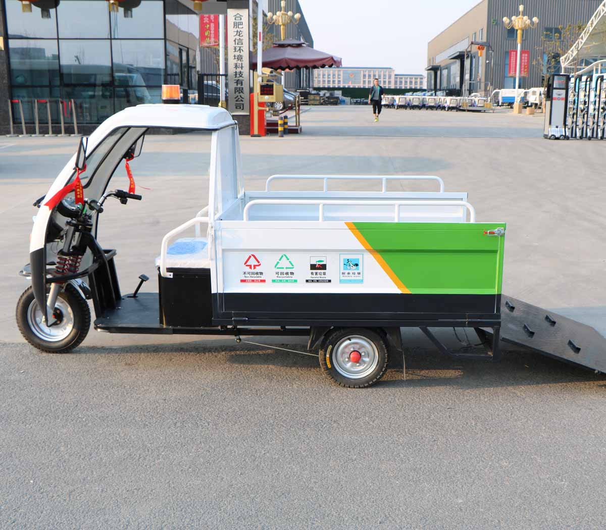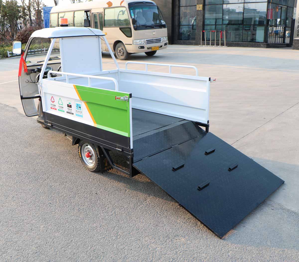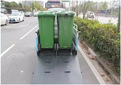 3、適用于短途駁運垃圾桶,可裝載4個240L標準垃圾桶;裝卸方便,集垃圾收集、存儲、清運于一體,有效提高作業(yè)效率;